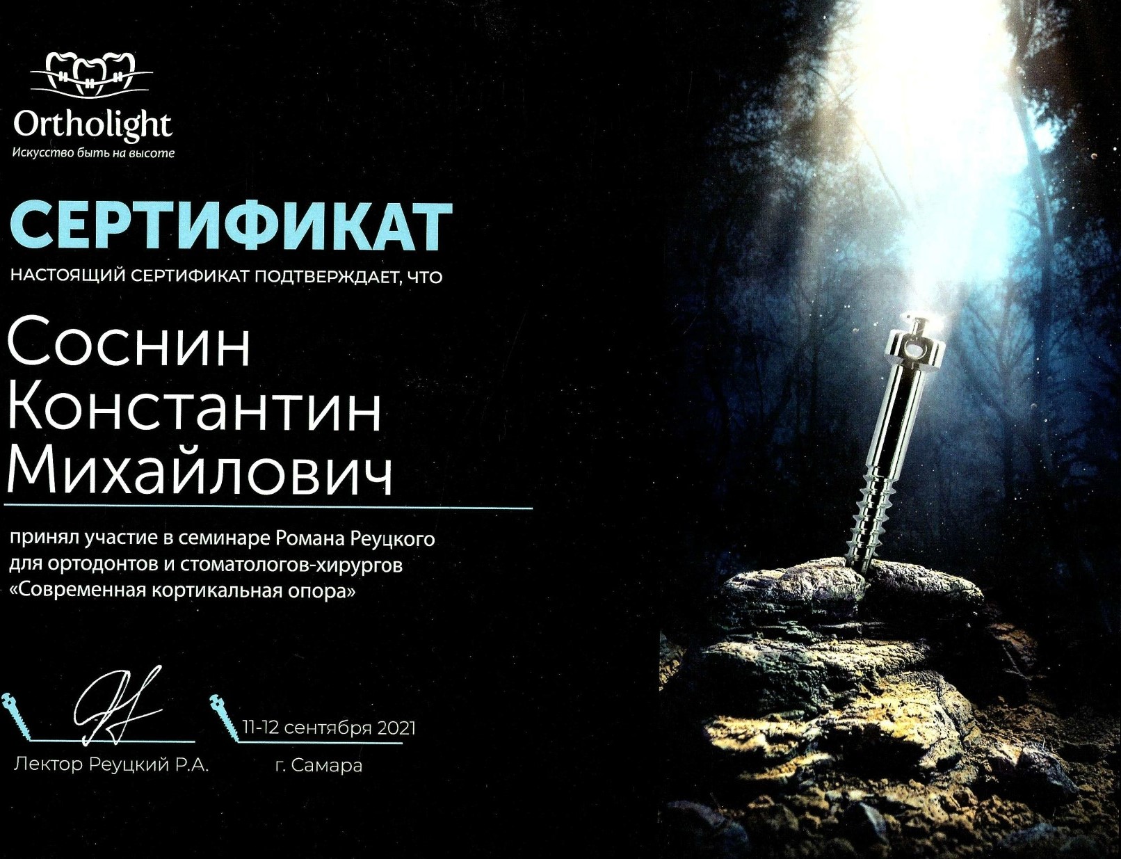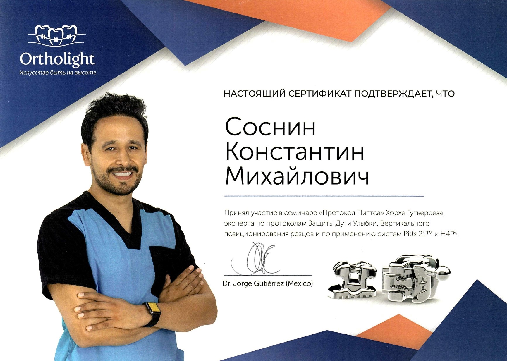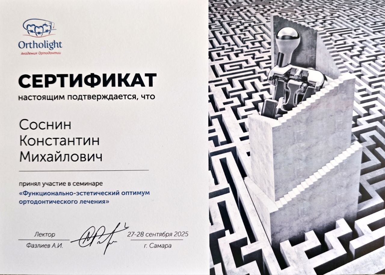 Послевузовское образование (ординатура). Сертификат "Ортодонтия" - 2015г.